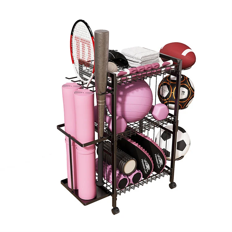 Овој метален локал за складирање на јога подлога има три слоја плус два странични системи за складирање. Левата страна е независно дизајнирана, проширувајќи го просторот, кој може да собере 2-3 јога душеци со редовна големина кога ќе се постават исправено. Во исправеното складиште може да се смести и опрема од долг тип како што се тениски рекети, бејзбол палки, стапчиња за хокеј итн.
